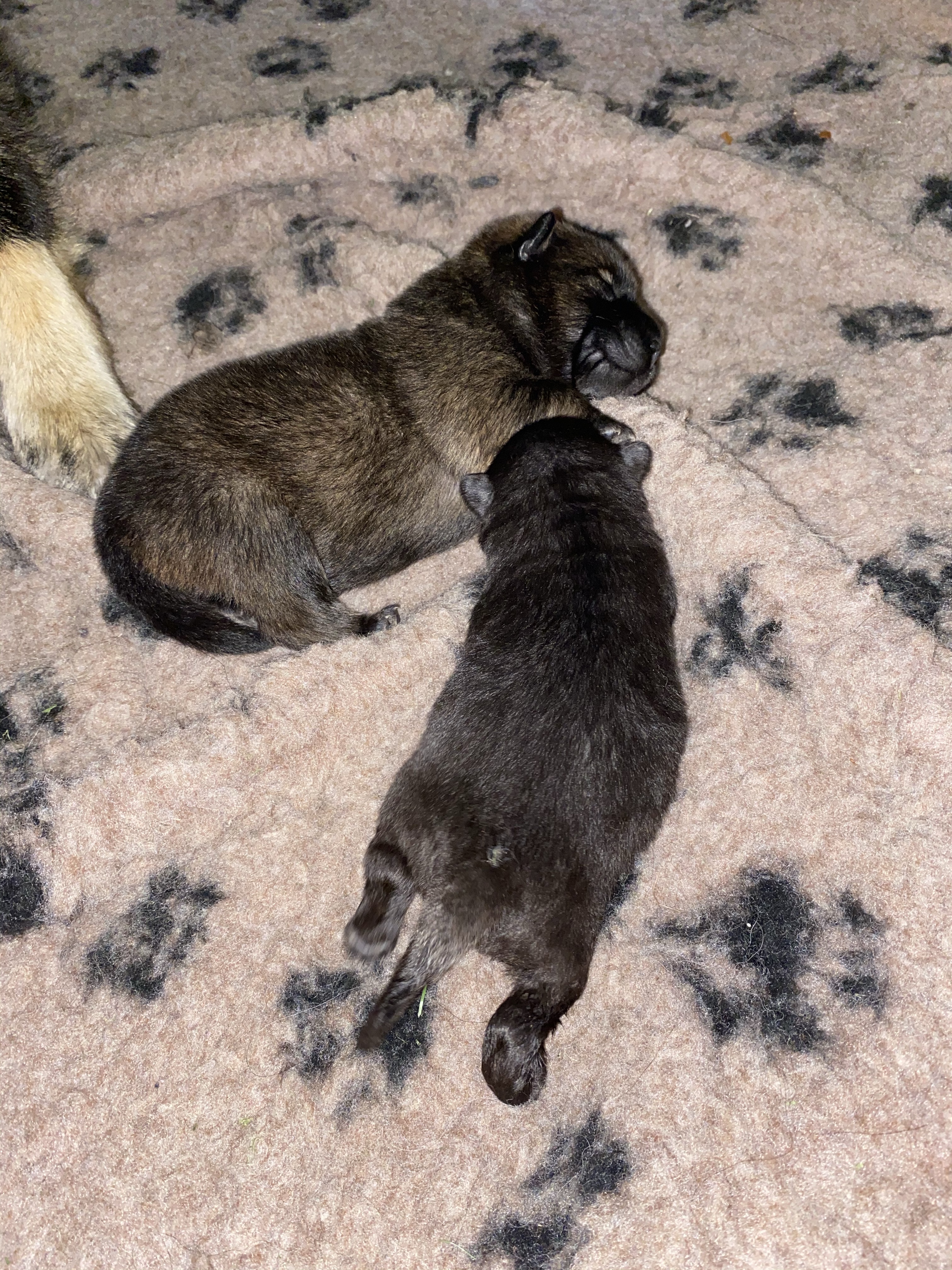 Det visade sig för ett par dagar sedan att våran lilla 200 grammare Bibbi också är en pojke. Så tokigt det kan bli! Nu har vi alltså en kull på 4 hanar och 1 tik. Hur vi kunde se så fel vet jag inte, det känns minst sagt förvirrande, men vi skyller på sömnbristen 🙂
