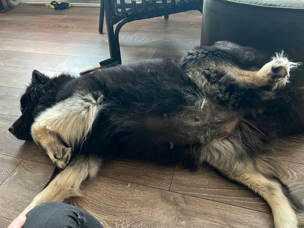 Penny mår bra och tar det hela med ro. Hänger gärna med på promenader om än lite långsammare än vanligt 😊