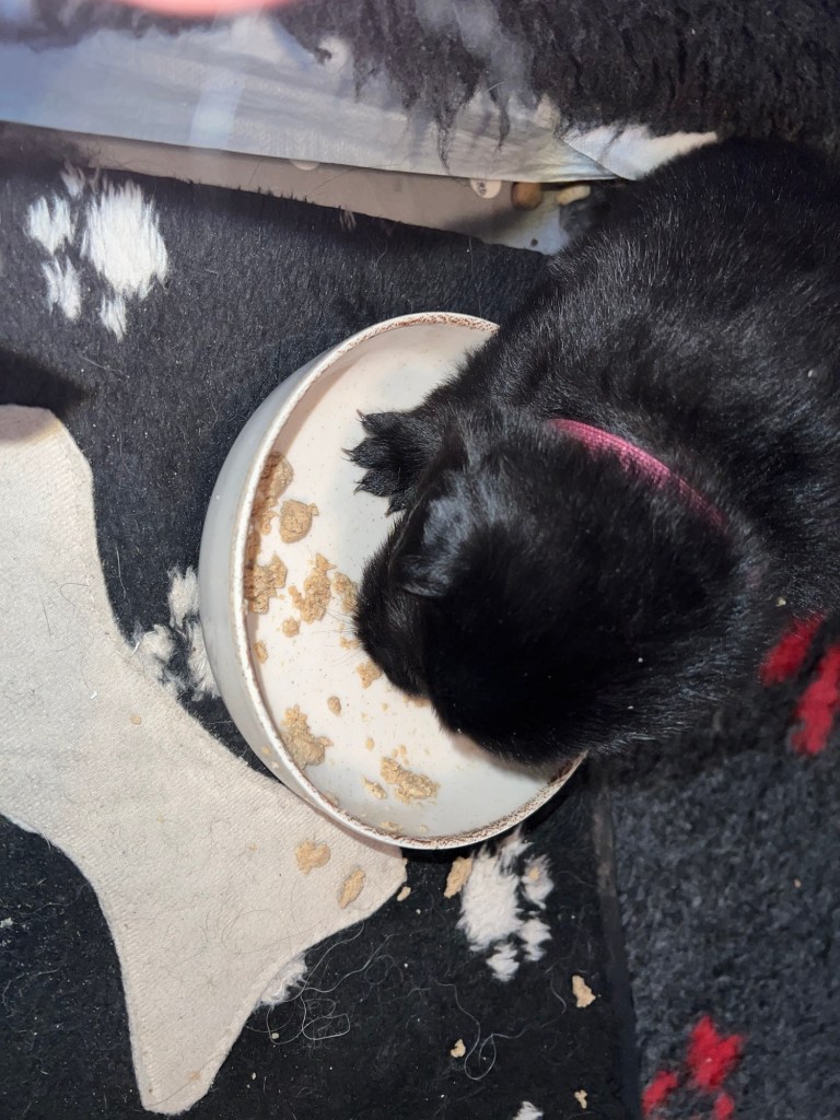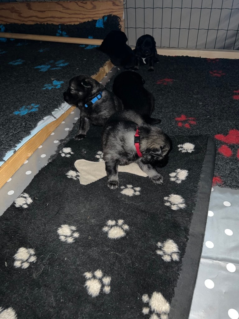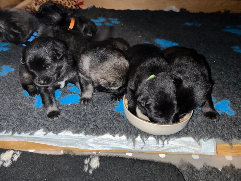 Senaste dagarna har det verkligen börjat hända grejer med dom små. Flera började klättra över kanten i valplådan så nu har vi fått skruva bort fronten. En ny spännande värd har öppnat sig 🙂 idag har dom även fått provsmaka lite foder och det var verkligen uppskattad, särskilt av tjejorna Cajsa och chili 😉