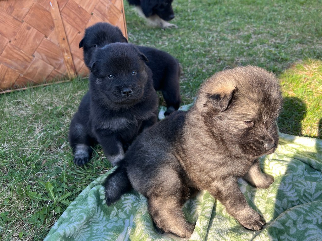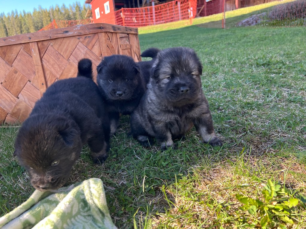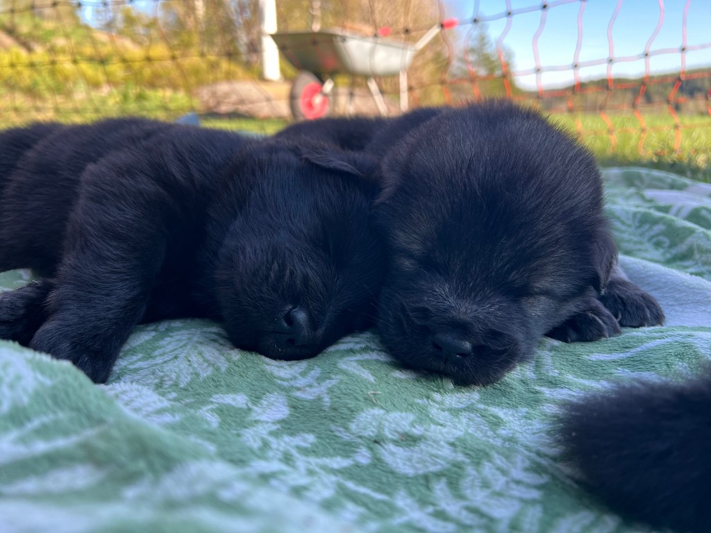 Maj bjuder på sommarvärme och idag har småtrollen fått komma utomhus för första gången. Det verkade uppskattat av alla och förhoppningsvis kommer vi spendera massor med tid ute i hagen framöver 😊 valparna är nu registrerade hos SKK och stamtavlorna är på väg med posten. Nu är vi snart halvvägs till leverans – lite vemodigt för oss men desto roligare för er som väntar på att få hämta hem era nya familjemedlemmar 😍