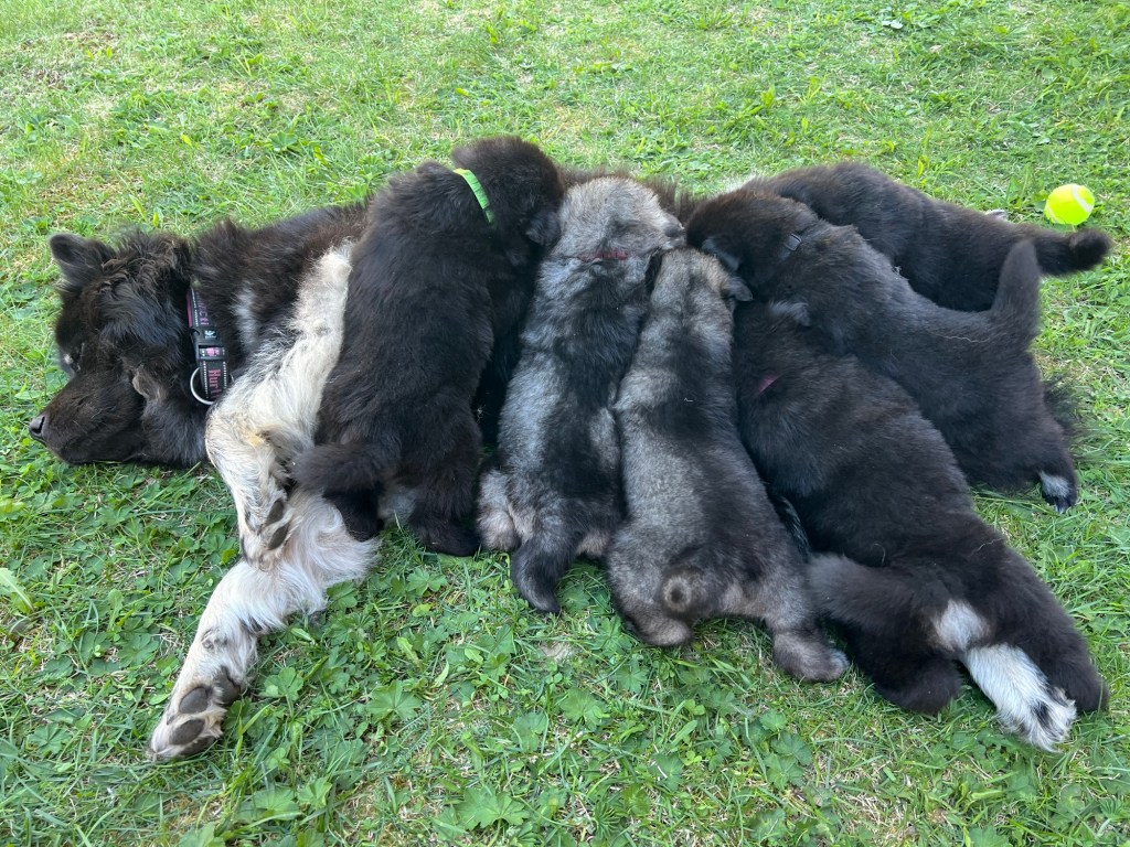 Ännu en vecka har sprungit förbi och valparna har blivit 5 veckor. Nöjda, nyfikna, kontaktsökande och matglada är dom allihopa – precis som det ska vara 😊 vädret är verkligen på våran sida så mycket av dagarna spenderas utomhus.