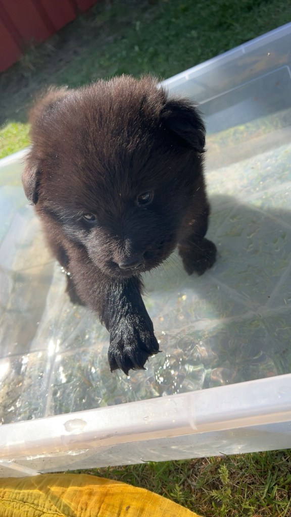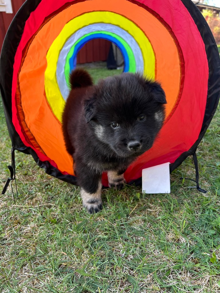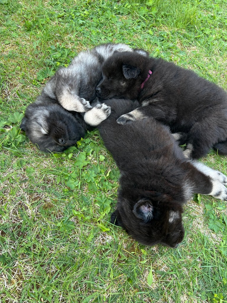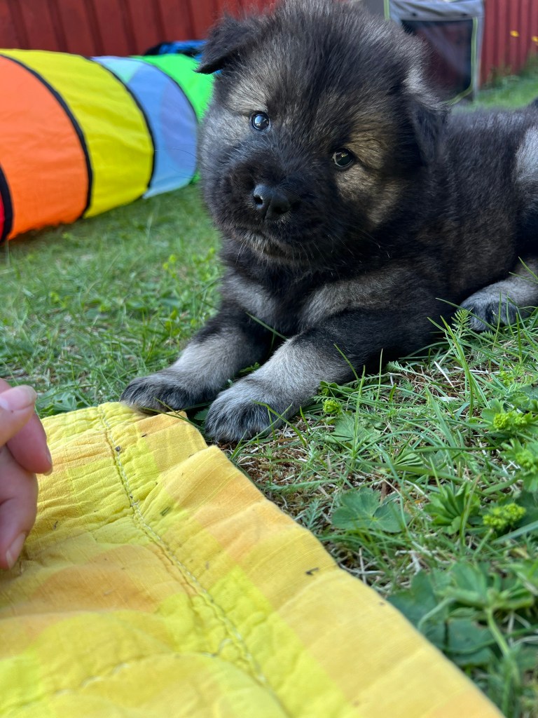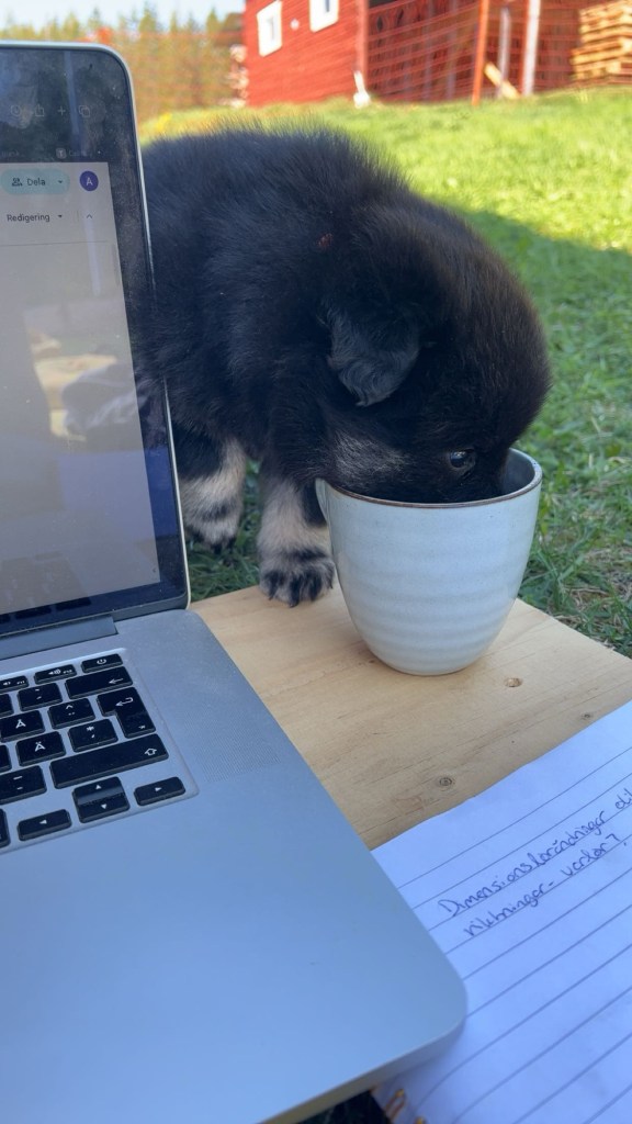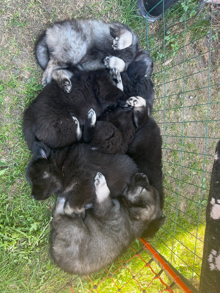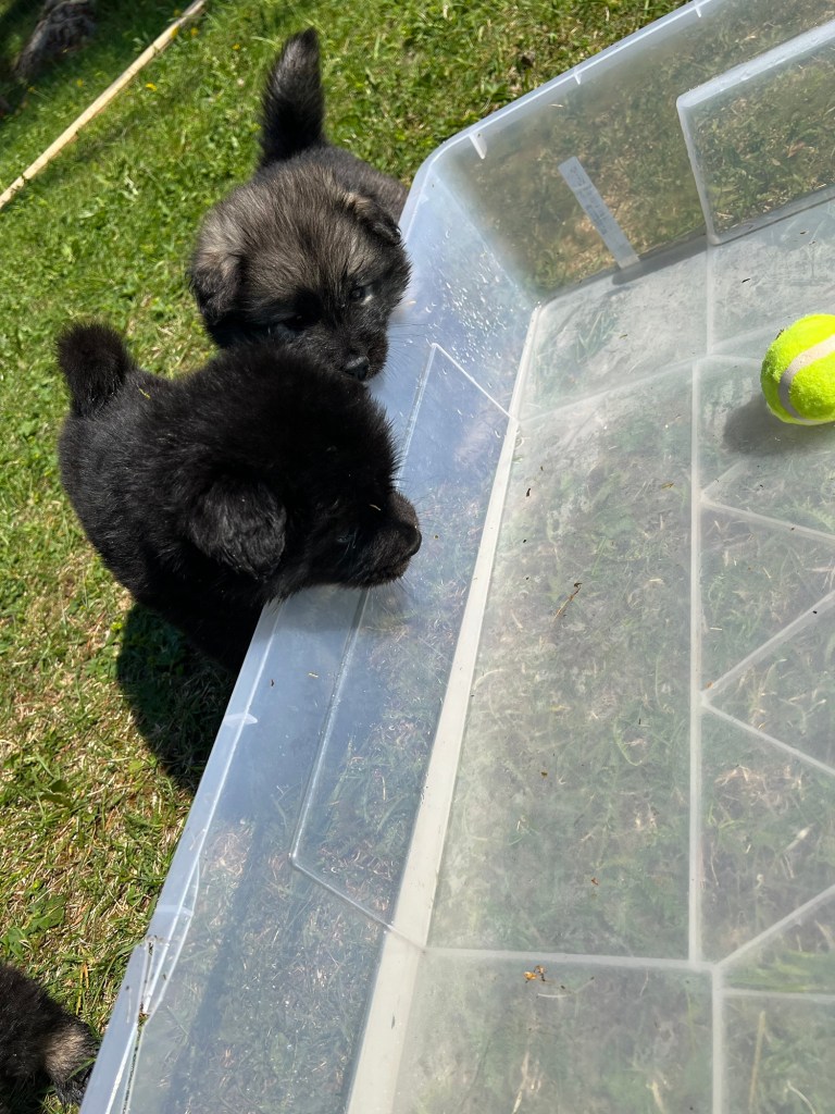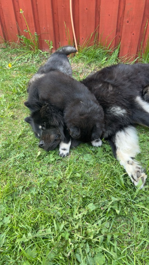 Vädret fortsätter leverera här i norr och hela den här veckan har vi varit ute från tidig morgon till sen kväll. Nytt i hagen för veckan är en liten badbalja att svalka tassarna i. Full fart på gänget såklart och dom är väldigt duktiga på att roa varandra. Dom jagar varandra, har dragkamp om leksakerna och så en och annan brottningsmatch förstås. När dom får gå in om kvällarna är dom väldigt nöjda och vi hör inte ett pip från dom under nätterna.