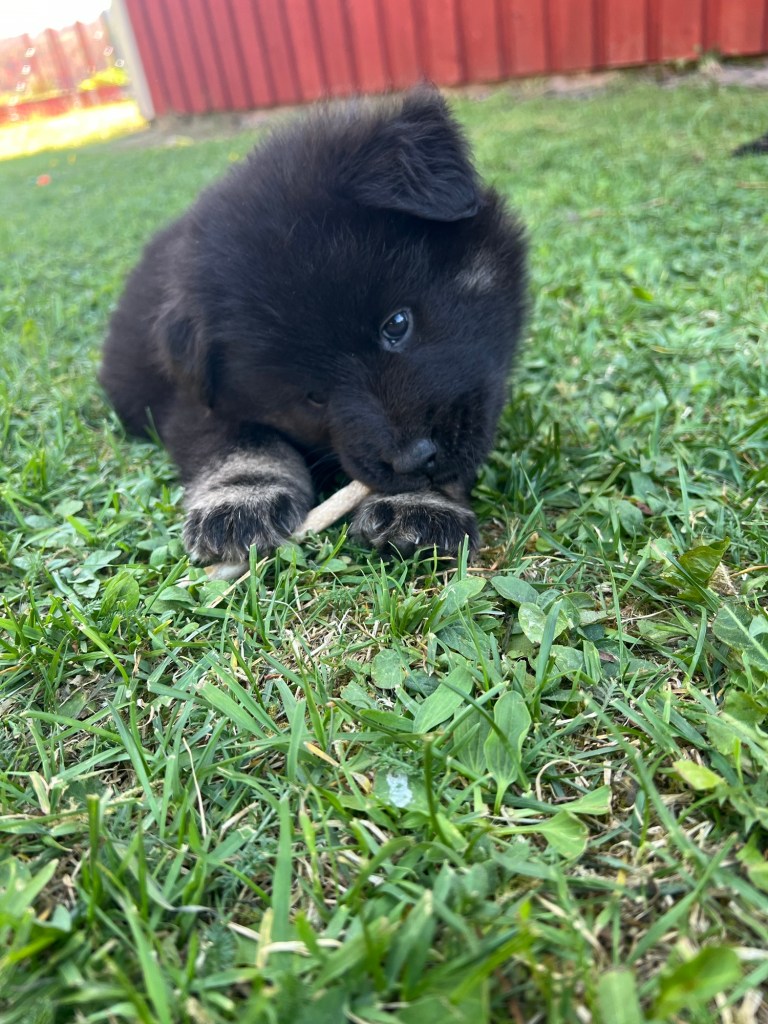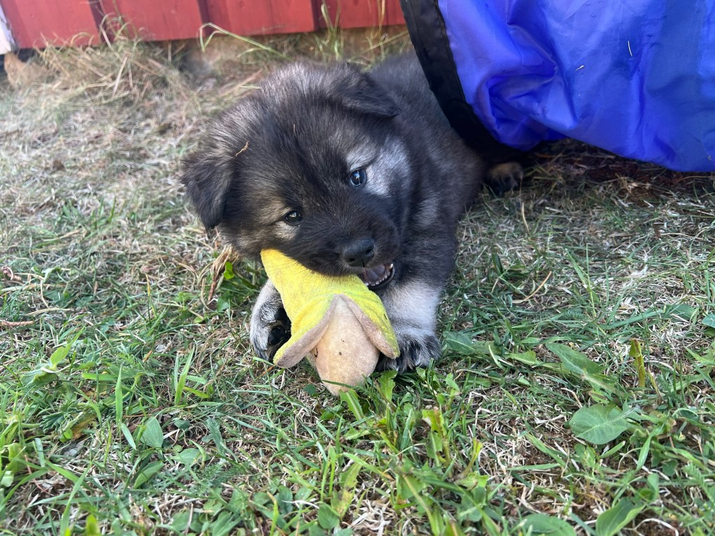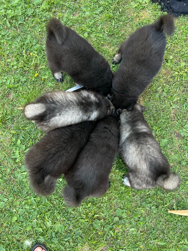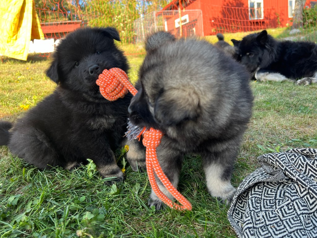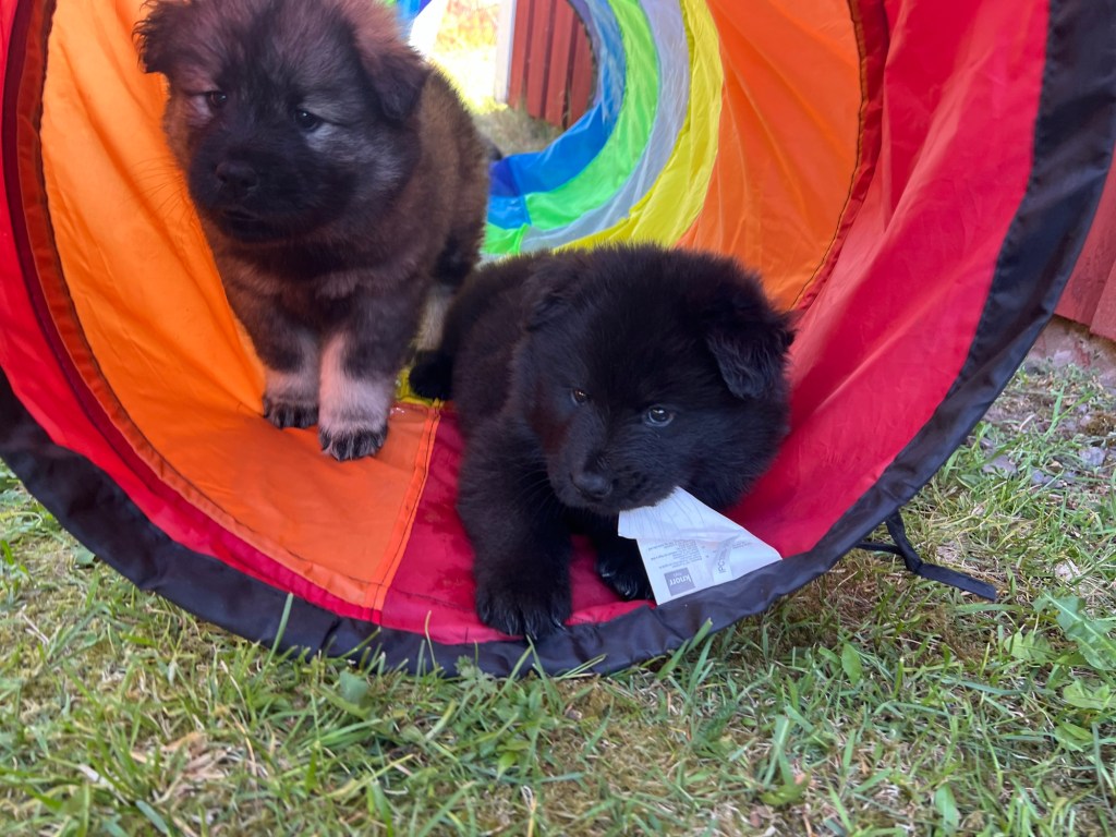 Idag blir småttingarna 6 veckor! I veckan har dom fått komma utanför valphagen både inomhus och utomhus för att få bekanta sig ytterligare med den stora världen utanför. Ett besök i bagageluckan har det också blivit men tyvärr ingen biltur då det varit så varmt och min AC har pajat. Ser ut att bli svalare till veckan dock så då kan vi förhoppningsvis ta en liten raggarrunda hemma på byn.