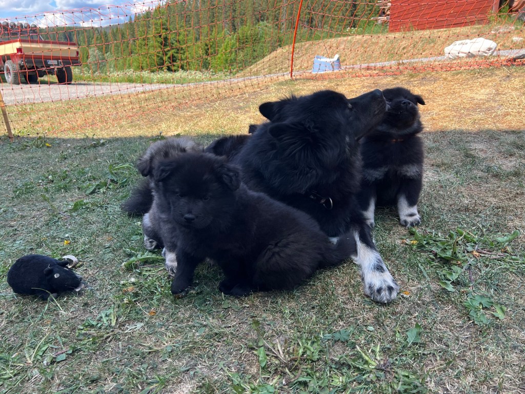Igår blev valparna 7 veckor och det är bara 1 vecka kvar tills dom är redo att flytta till sina nya hem. Dom är så fina och härliga nu – nyfikna och glada i människor. I helgen hade vi pappa Lemmy och hans husse och matte på besök så det var superkul att dom fick se och träffa småttingarna också.